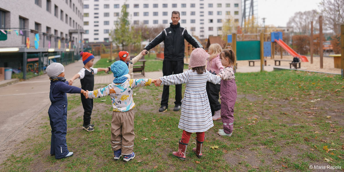 Der inklusive Gesellschaftsgedanke von Matt Lamb spielt eine wichtige Rolle, sodass Kinder aus verschiedenen Kulturen sowie mit unterschiedlichen Fähigkeiten und Bedürfnissen einen Platz in unserer Einrichtung finden. Aktuell werden bei uns viele Kinder aus unterschiedlichen Fluchtgebieten betreut, die vor allem in den umliegenden Wohnheimen für Familien mit Fluchterfahrung wohnen. Pädagogische Grundlage unserer Arbeit ist das Berliner Bildungsprogramm mit Merkmalen des situationsorientierten Ansatzes (S.o.A.) von Herrn Prof. Dr. Armin Krenz. Dieser Ansatz wurde von Armin Krenz in den 1980er Jahren in Kiel basierend auf interdisziplinären Erkenntnissen aus Entwicklungspsychologie, Neurobiologie, Bindungs- sowie Bildungsforschung entwickelt. Die bisherigen Erfahrungen und Erlebnisse der Kinder, die über sechs verschiedene kindliche Ausdrucksformen (Sprache, Motorik, Tag- und Nachtträume, Malen/ Zeichnen, Verhalten, Spiel) beobachtet werden, dienen als Grundlage für die pädagogische Arbeit. Unsere Kinder sind aktiv gestaltende gleichberechtigte Partner mit eigenen Bedürfnissen. Daher bekommt jedes Kind die Möglichkeit, seine Persönlichkeit zu entwickeln und im Zusammenleben mit anderen Kindern und Erwachsenen zu entfalten. Bei der Entwicklung kindlicher Potenziale erfährt jedes Kind individuelle Unterstützung und behutsame Begleitung.